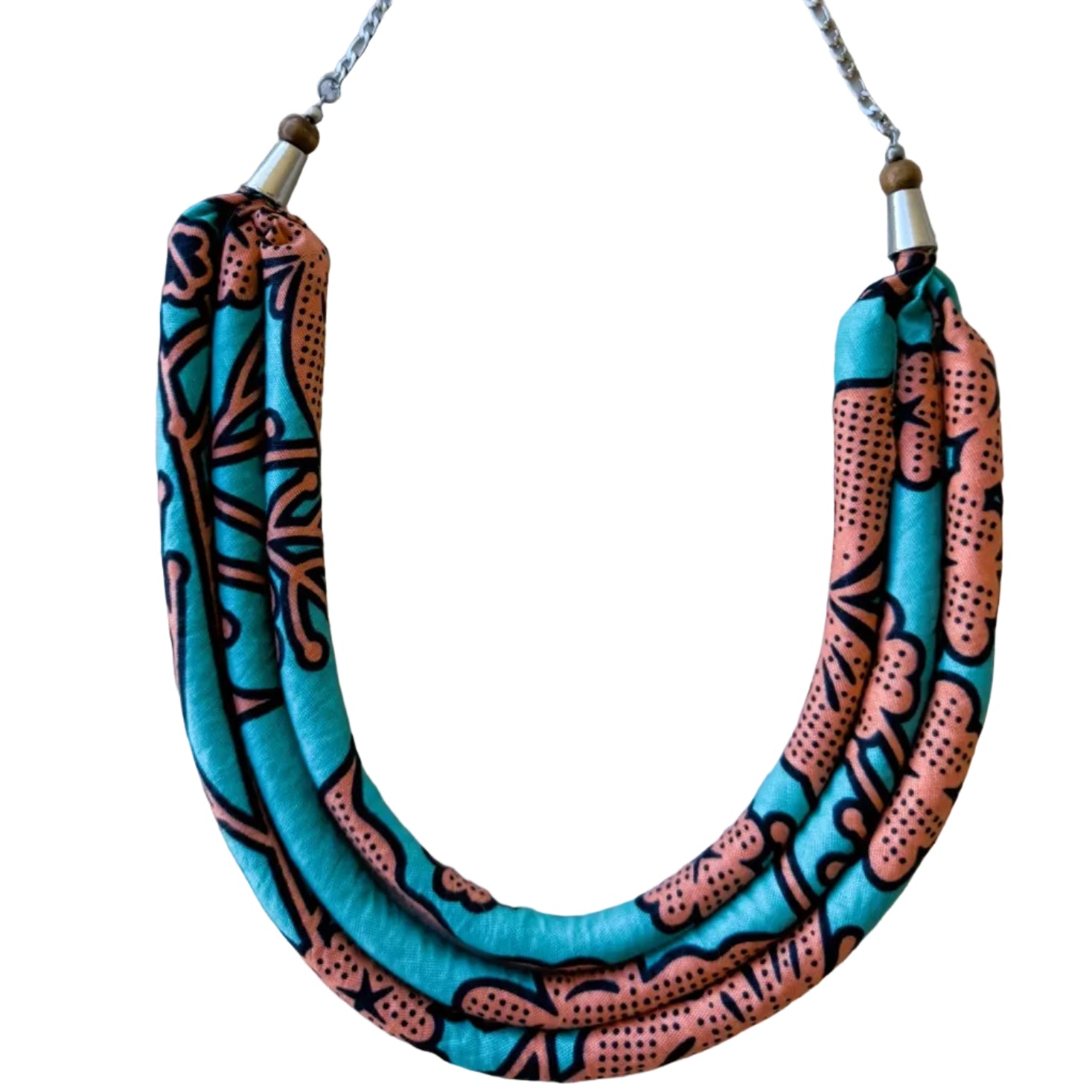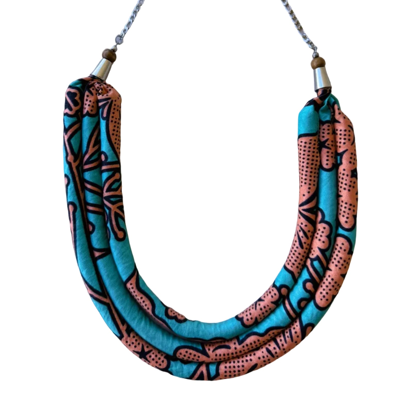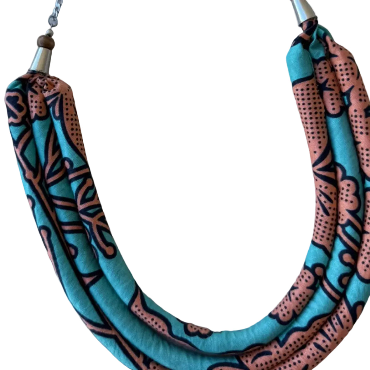 Com um design de 3 voltas, cria presença na zona do peito, mantendo leveza e conforto. Feito `a mão em capulana, combina tradição e estilo contemporâneo numa peça única e cheia de identidade.